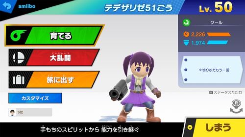 Miiファイターのamiiboの使い方の一例。 二次元キャラのMiiを作って登録する。 これだからMiiファイターのamiiboはプレミアが付くのですよ。 そんな話は置いておいて、 テデザリゼ、某喫茶店漫画のキャラクターから、 Mii自体は3DSのMiitopiaのみんなのMiiか…