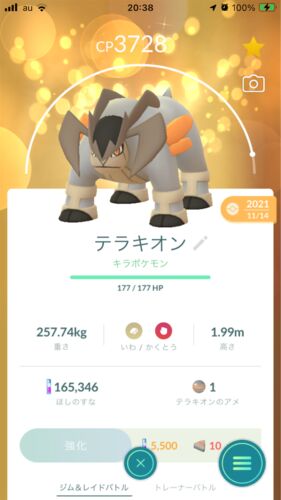 ジム攻撃に結構使えるポケモンを紹介していきます。 まずは定番のかくとうタイプから。 テラキオン。 にどげり、せいなるつるぎで、ハピナスを倒す主力になります。 技スロット解放していわなだれを覚えさせれば、ハピナスの相性補完としてよく置かれる、 む…